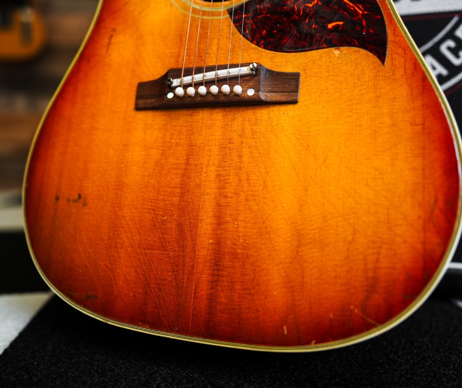 The 1965 Gibson Southern Jumbo (SJ) is a distinguished flat-top acoustic guitar, renowned for its rich tonal quality and aesthetic appeal. Introduced in 1942 as an enhanced version of the J-45, the Southern Jumbo featured deluxe appointments that set it apart.