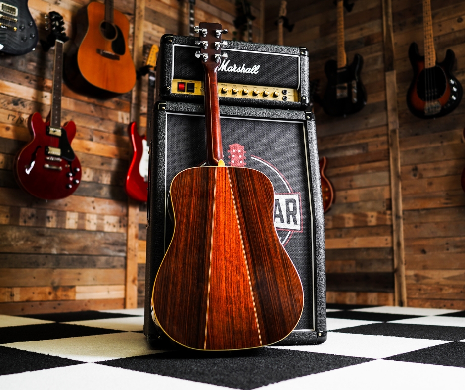 A 1973 Martin Dโ35 is a classic vintage dreadnought prized for its bold tone and rich projection, thanks to its select Sitka spruce top and three-piece Indian rosewood back. It features a comfortable, softโV mahogany neck and bound ebony fingerboard, creating a reliable and resonant playing experience that has stood the test of time.