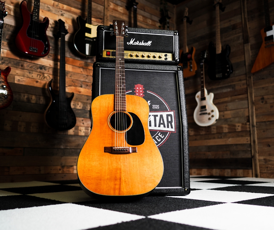 The 1975 Martin Dβ18 is a classic dreadnought that delivers warm, resonant tone and vintage character. Built during a transitional era for Martinβfeaturing a spruce top and mahogany body with non-adjustable tubular neck reinforcementβthis instrument offers authentic aged goodness. With solid construction, original Grover tuners, and rosewood fingerboard, itβs a workhorse acoustic that balances heritage vibe with great playability. There is a split in the top on of the guitar, though this doesn’t effect the structural integrity or sound of the guitar
