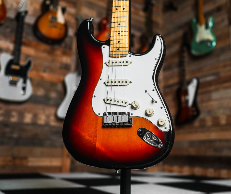 The Fender American Standard Stratocaster from 1987 in 3-Tone Sunburst represents Fender’s late-’80s return to consistency and quality, delivering classic Strat chime with modern reliability. Comfortable, versatile, and unmistakably Fender, it’s a true workhorse from the post-CBS revival era.