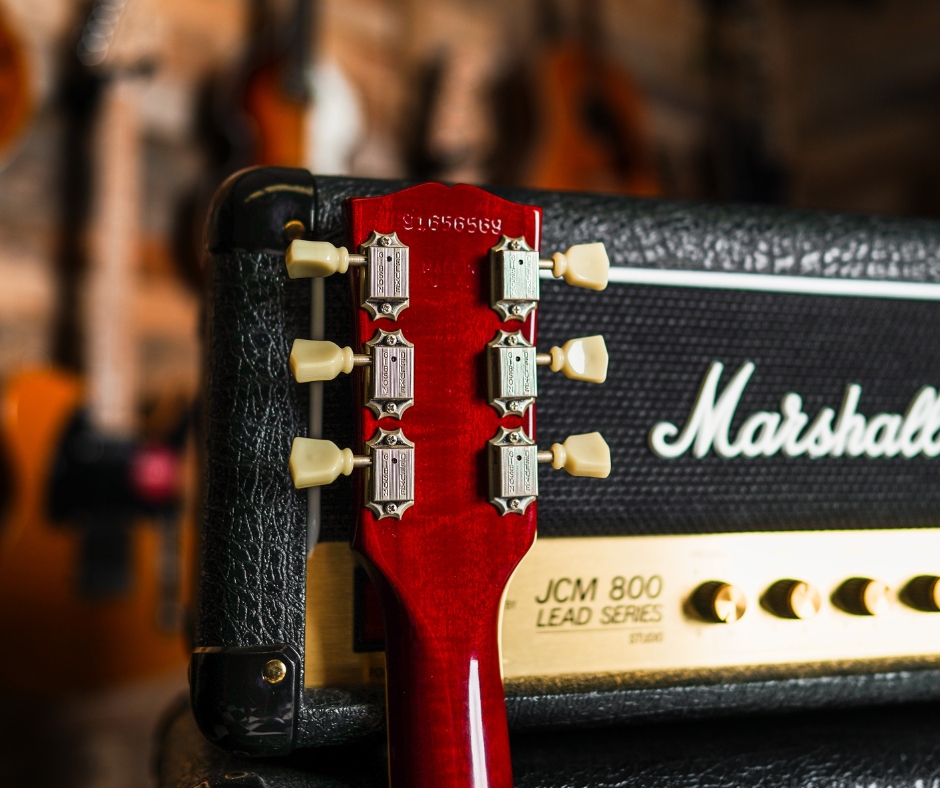 The 1991 Gibson Les Paul Standard in Cherry Sunburst is a classic early-β90s example of Gibson craftsmanship, delivering thick, warm tones with the sustain and punch Les Pauls are known for. With its carved maple top and timeless finish, itβs a workhorse built for tone and tradition.