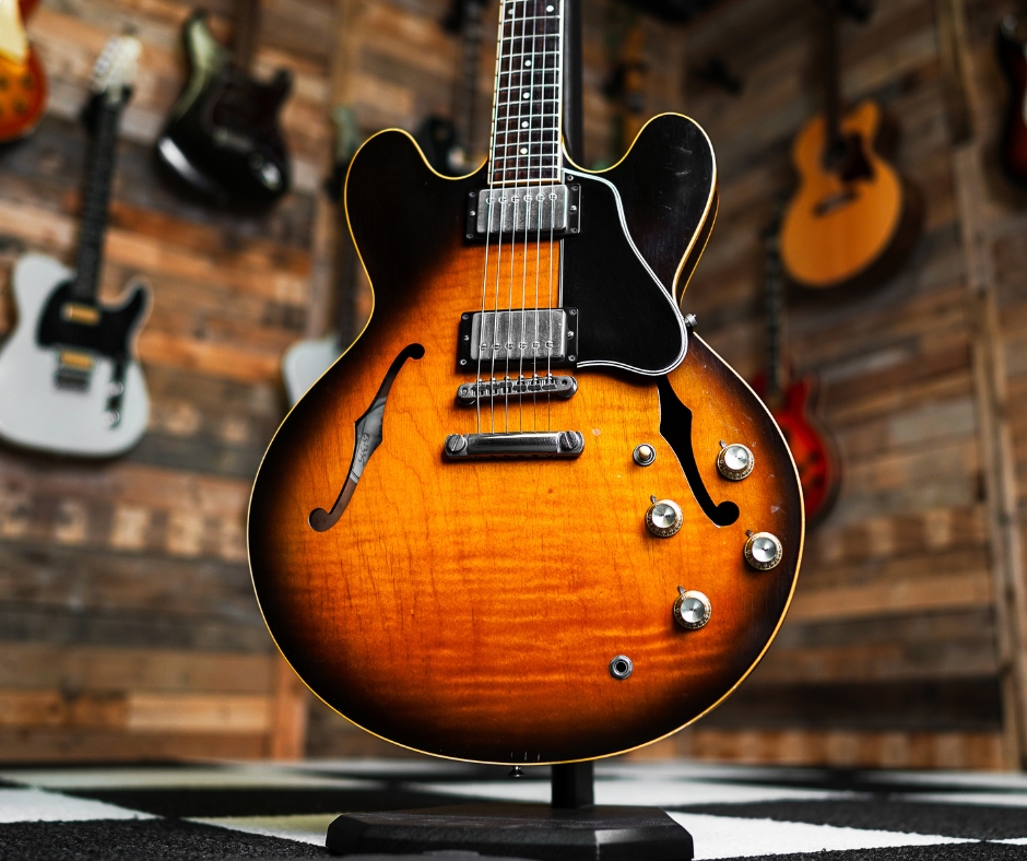 The Gibson ES-335 Dot from 1992 in Vintage Sunburst is a highly regarded Yamano-import example, prized for its exceptional build quality and vintage-correct tone. Warm, open, and effortlessly expressive, it captures the classic ES-335 voice that defined blues, rock, and jazz for decades.