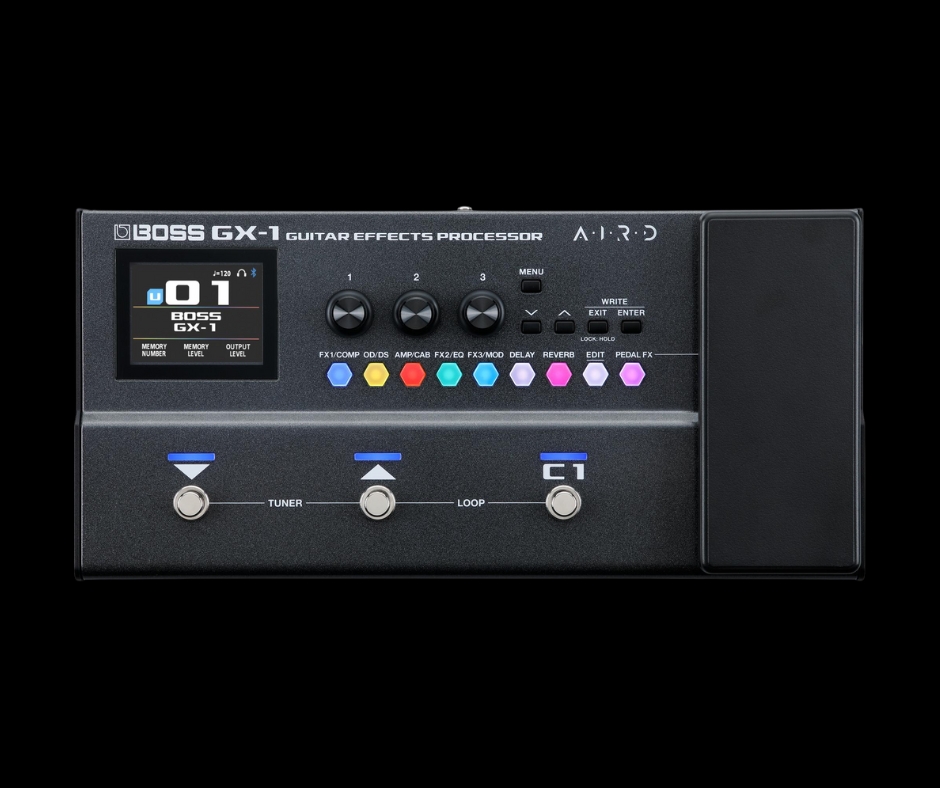 An ultra‑portable amp modelling and multi‑effects floor processor from Boss, the GX‑1 packs a robust set of features into a compact pedalboard‑friendly unit with a colour display, built‑in expression pedal and intuitive controls — ideal for practice, recording or small‑gig use. It combines premium BOSS amp and effects algorithms with easy navigation, versatile connectivity, and extensive preset storage for a wide range of tones.