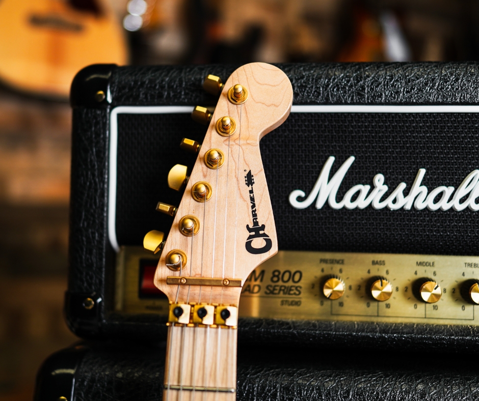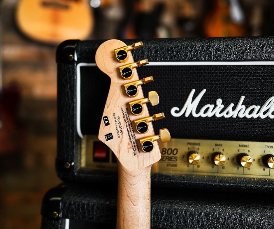 The Charvel Pro‑Mod DK24 HH FR Mahogany w/ Quilt Maple in Dark Amber is a high-performance β€œsuper Strat” designed for speed, tone versatility, and eye-catching aesthetics.