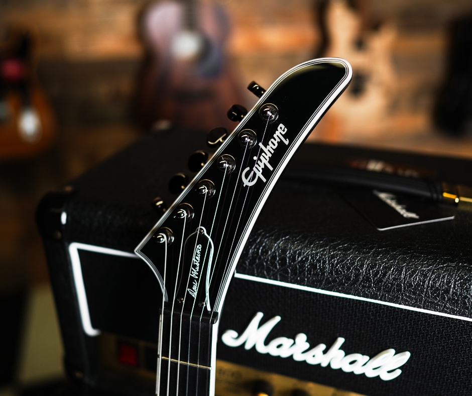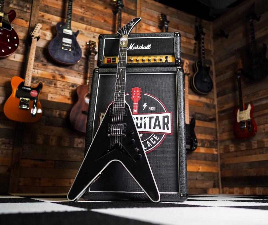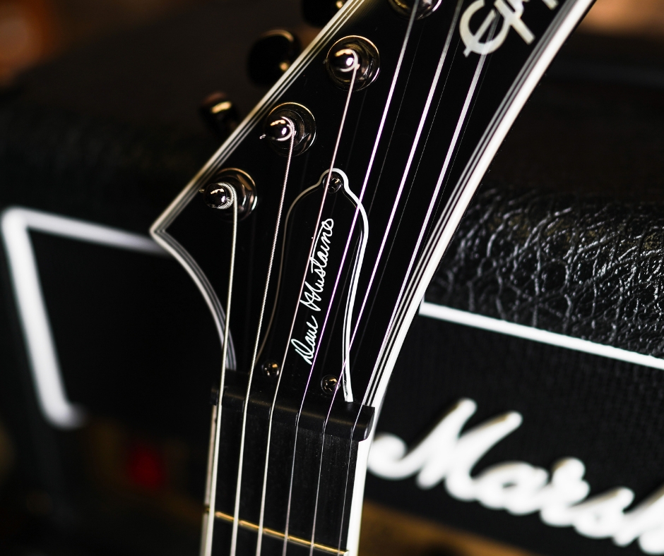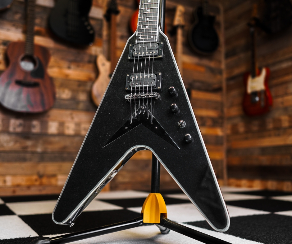 The Epiphone Dave Mustaine Flying V Custom in Black MetallicΒ is a signature instrument crafted to Dave Mustaineβs personal specifications and playing style. Built for aggressive tone and prolific speed, it offers exceptional metal performance with a premium build.