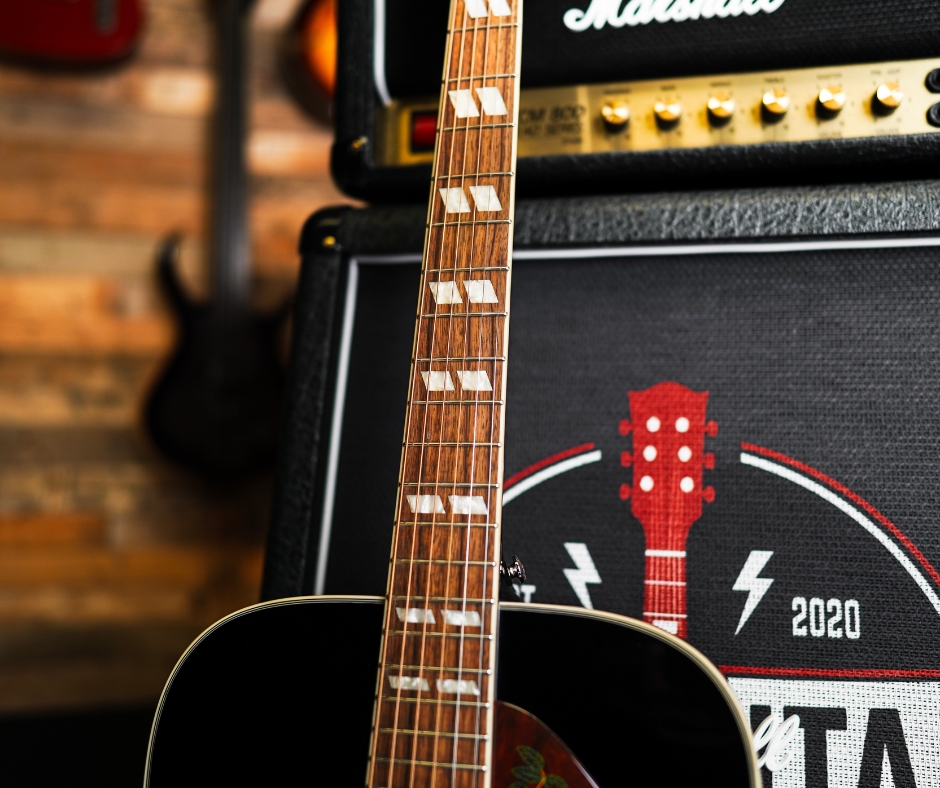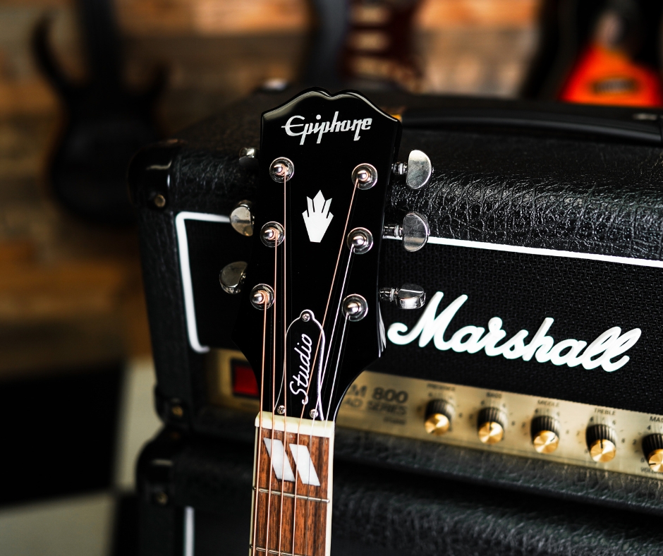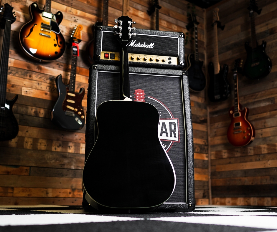 The Epiphone Dove Studio in Transparent Ebony Burst captures the elegance of the original Gibson Dove with modern playability and amplified power. Boasting a classic squareβshoulder dreadnought shape and sparkling Fishman Sonitone electronics, it delivers a rich, articulate voice both unplugged and on stage.