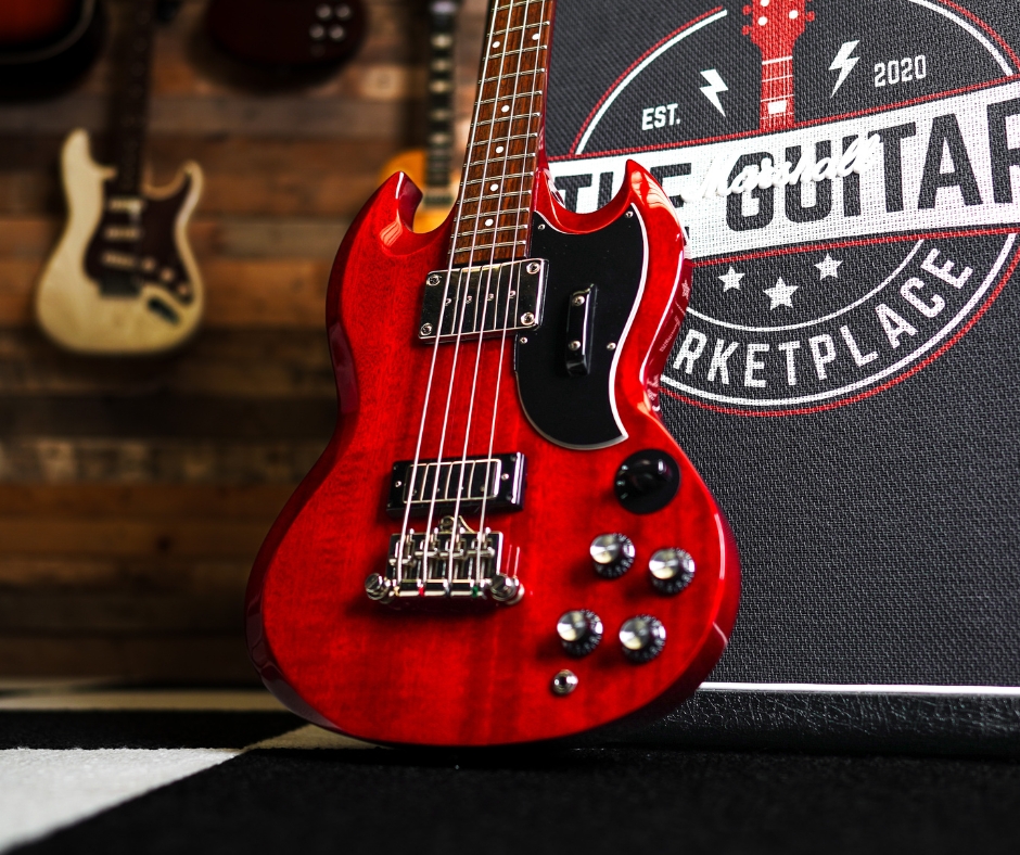 The Epiphone EB-3 Bass in Cherry is a modern reissue of the classic Gibson EB-3, offering vintage aesthetics and deep, punchy tones at an accessible price point. With its iconic SG-style body and dual humbuckers, this bass delivers a rich, warm sound suitable for various genres, from rock and blues to funk.