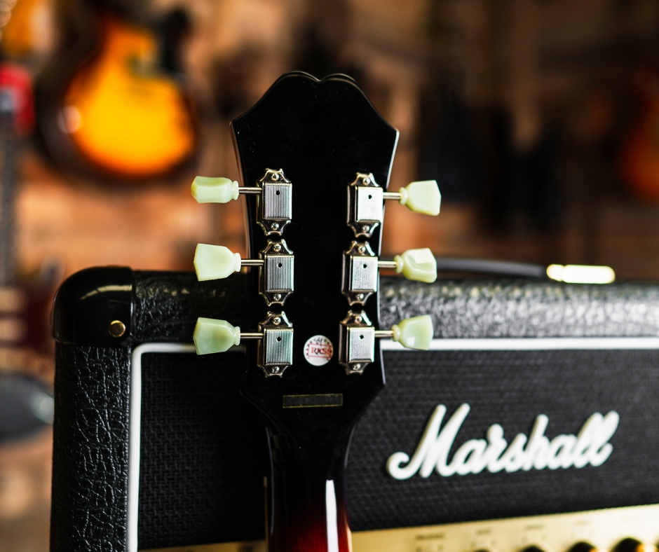 The Epiphone EJ‑160E John Lennon Signature in Sunburst faithfully recreates the iconic Gibson J-160E used by Lennon during the early Beatles years, featuring a sloped‐shoulder dreadnought build, solid spruce top, and built-in mini‑humbucker for that classic ’60s tone .