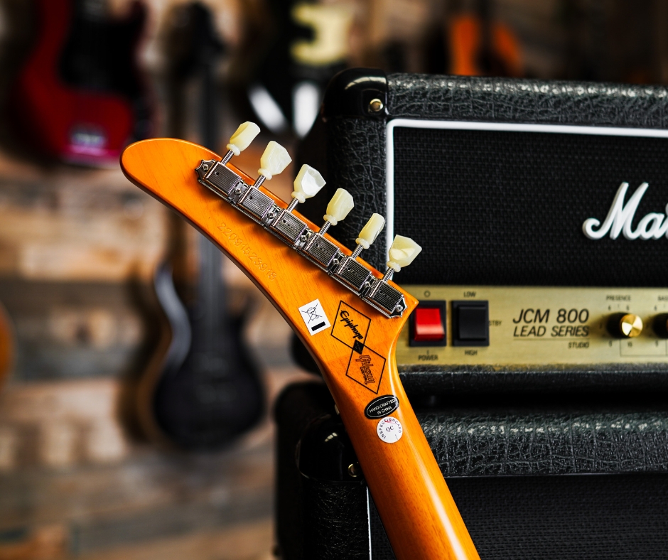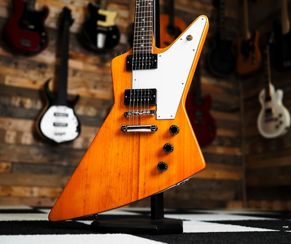 The Epiphone Inspired by Gibson β58 Korina Explorer revives the bold design and tonal character of the original 1958 Gibson Explorer, built in partnership with Gibson Custom Shop. Crafted from lightweight korina wood with vintage-style gold hardware and high-performance Burstbucker pickups, this Explorer delivers raw, resonant tone with superb playability and unique midβcentury style.