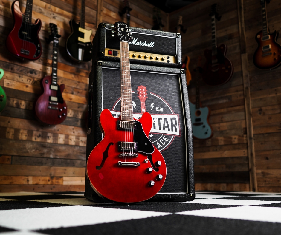 The Epiphone βInspired by Gibsonβ ESβ339 in Cherry is a semiβhollow electric guitar offering classic tone and design at a more accessible price. It features a laminated maple body with a solid center block for warmth and sustain, set mahogany neck with a comfortable Rounded C profile, and a pair of Alnico Classic PRO humbuckers delivering versatile vintage tones.