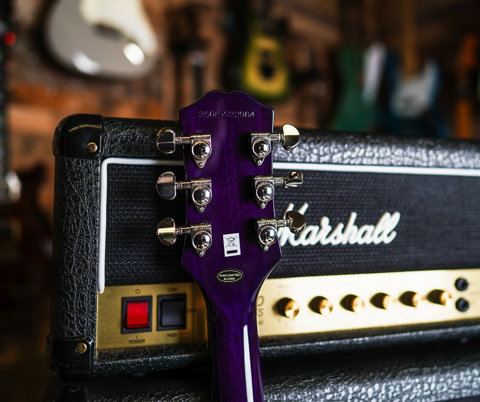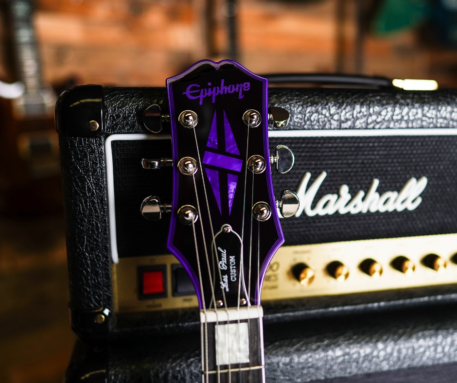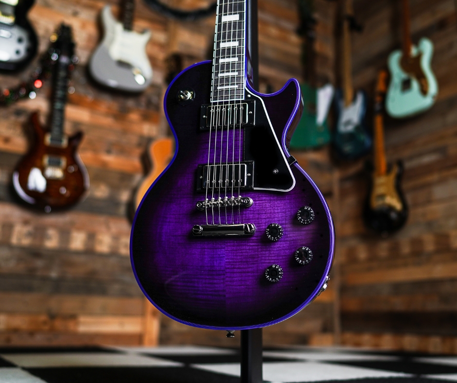 A limited‑edition Epiphone Les Paul Custom Widow in Purple Burst delivers classic Les Paul style with standout visual flair. Part of Epiphone’s Inspired by Gibson range with colour‑matched binding and a flame maple top, it pairs rich mahogany tonewood with ProBucker humbuckers for great sustain and warmth across genres.