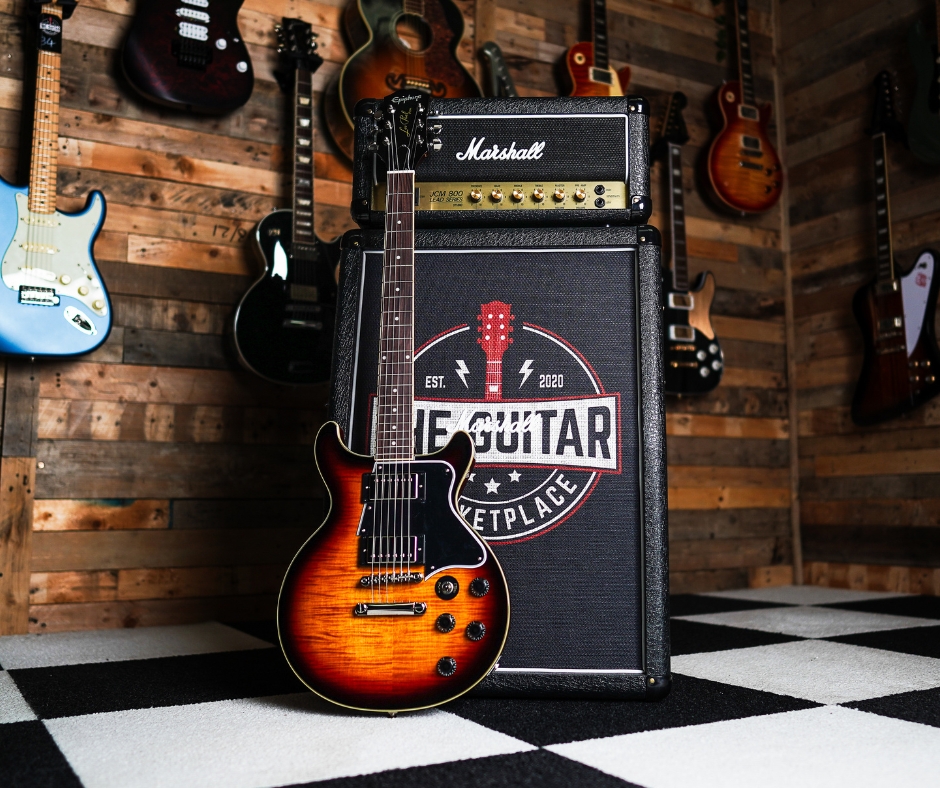 The Epiphone Les Paul Special Double Cut Figured in Bourbon Burst is a breathtaking fusion of vintage “Special” grit and boutique aesthetics. This model elevates the classic slab-body design with a stunning AAA flame maple veneer.