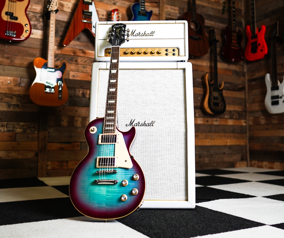 The Epiphone Les Paul Standard β60s Figured in Blueberry Burst is a stunning, vintage-inspired guitar that delivers the classic Les Paul tone and feel with a striking modern finish. Featuring a flame maple top, solid mahogany body, and a comfortable SlimTaper β60s neck, this model provides rich sustain, warm mids, and articulate highs. Outfitted with ProBucker humbuckers and high-quality hardware, itβs perfect for players seeking authentic Les Paul performance at an accessible price.