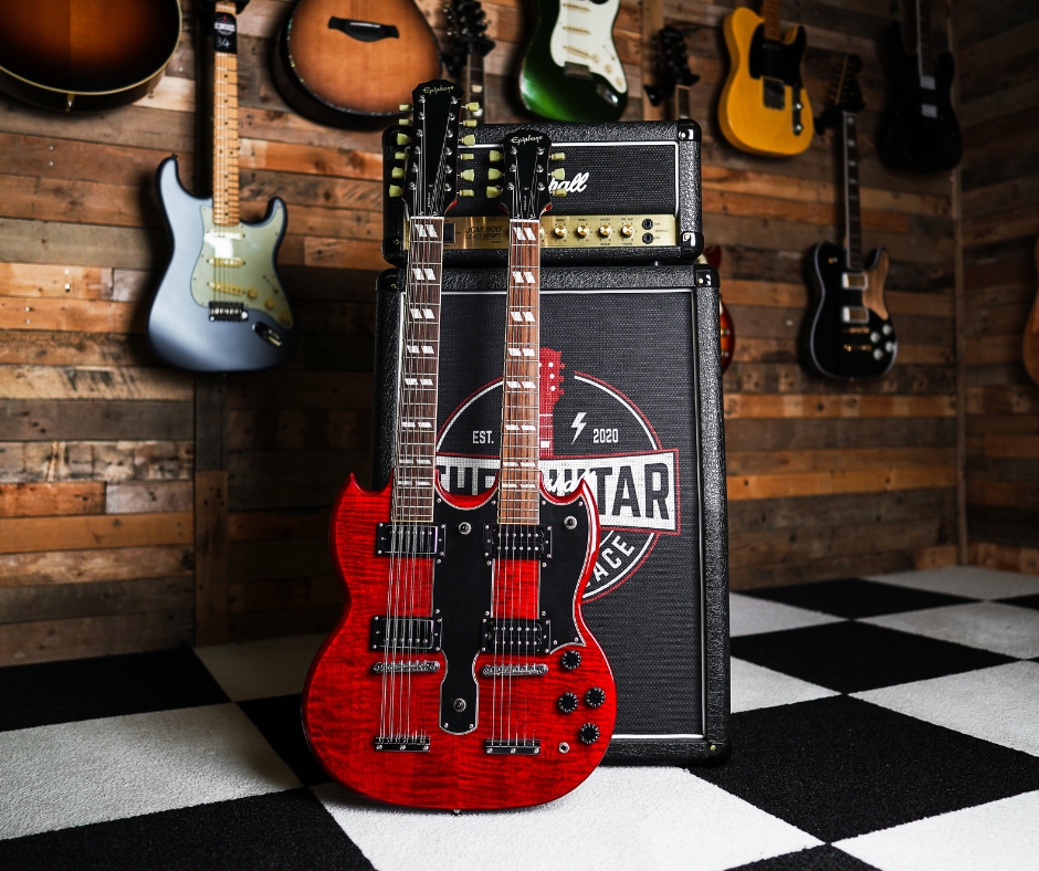 A 12‑string and 6‑string pair built into an SG‑style body, the Epiphone G‑1275 Double Neck delivers lush rhythm textures from the 12‑string neck and focused lead power from the 6‑string neck, making it perfect for stage shows and those classic multi‑neck parts popularised in rock history (think Jimmy Page).