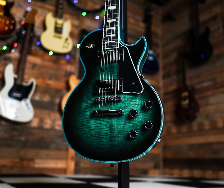 The Epiphone Les Paul Custom Widow takes the classic Les Paul Custom blueprint and gives it a modern, eye‑catching makeover: colour‑matched binding, a figured maple top, and a vibrant Indigo Burst finish. It delivers rich Les Paul tone and sustain while offering a distinctive, “stand‑out” look, perfect for stage or studio!
