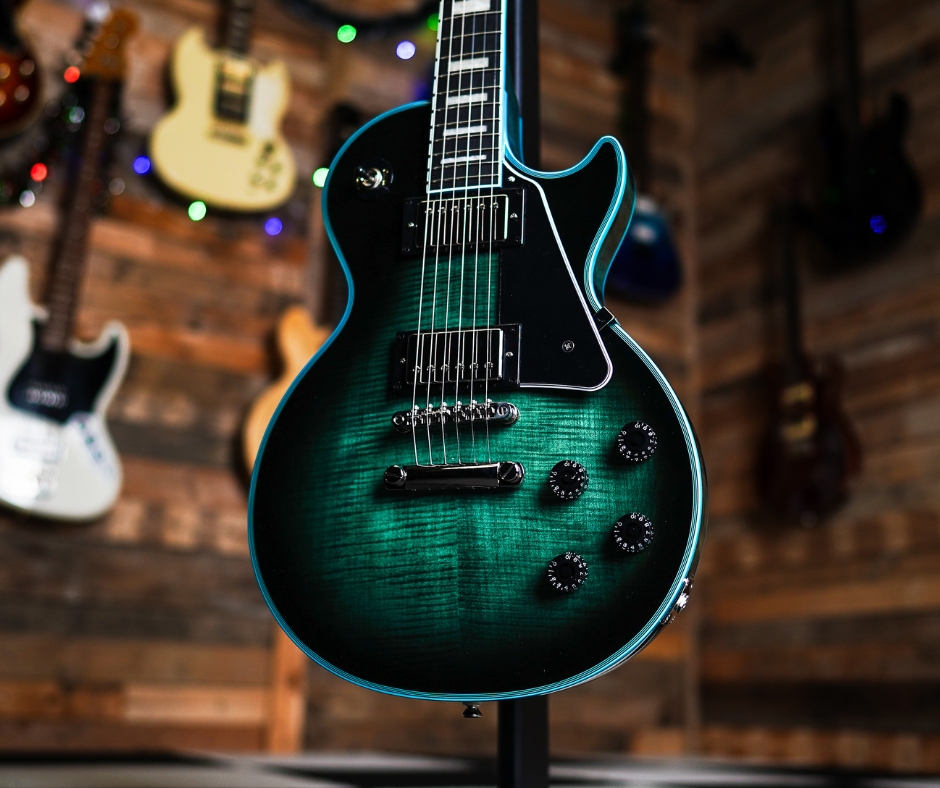 The Epiphone Les Paul Custom Widow takes the classic Les Paul Custom blueprint and gives it a modern, eye‑catching makeover: colour‑matched binding, a figured maple top, and a vibrant Indigo Burst finish. It delivers rich Les Paul tone and sustain while offering a distinctive, “stand‑out” look, perfect for stage or studio!