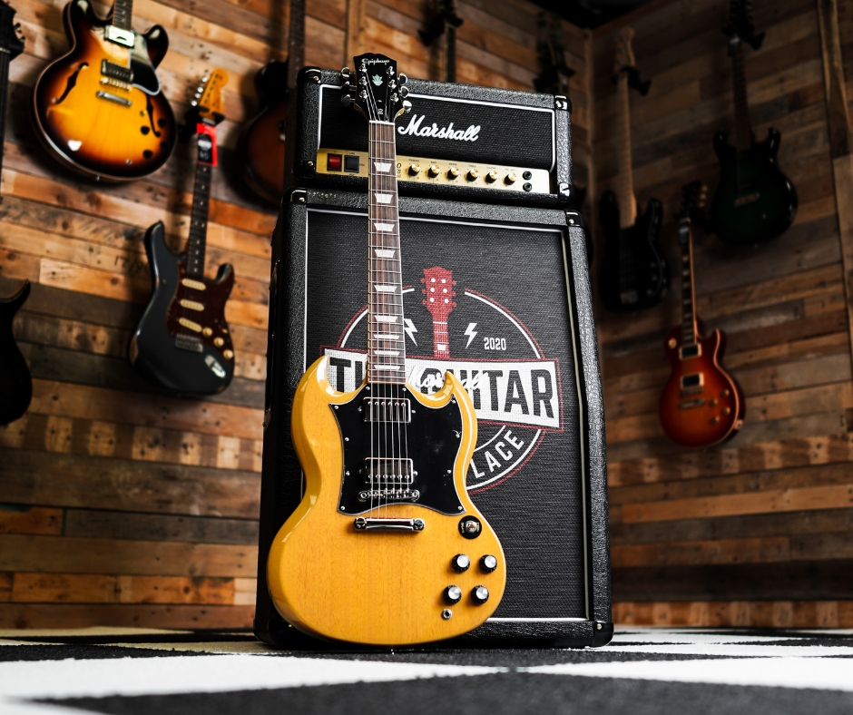 The Epiphone SG Standard in TV Yellow delivers iconic SG tone and styling with a vintage-inspired twist, pairing a lightweight mahogany body with powerful humbuckers. Fast, resonant, and full of bite, it’s a classic rock machine with a distinctive retro finish and modern reliability.