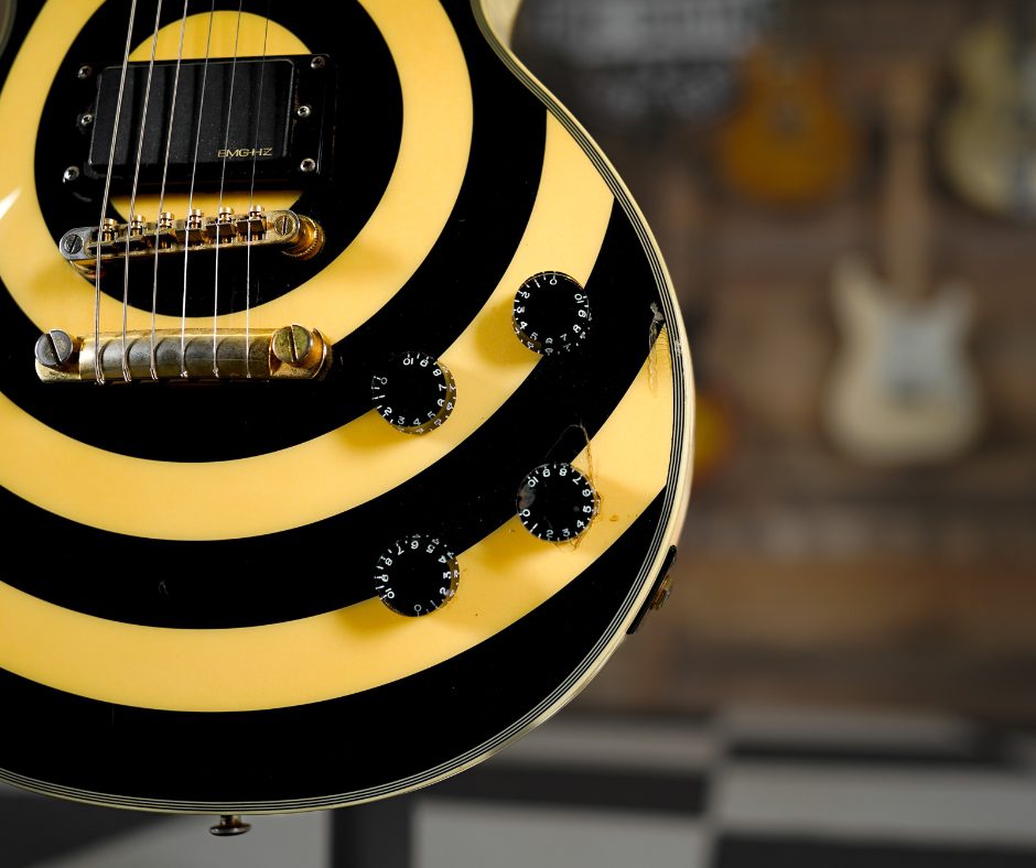 Based on Zakk’s guitar, this signature Epiphone model has a deep mahogany body to enhance its sustain, with a maple top that replicates the orange and black custom graphics. A hard maple neck is set deep into the Buzzsaw’s body to provide superior stability, while a flush rosewood fingerboard provides the ultimate canvass for lightning-speed riffs, slides, and bends. True to the blueprint, the Epiphone Buzzsaw also features twin EMG-HZ4 humbuckers for Wylde’s high-output tone, and a tune-o-matic bridge and stop bar for stability.