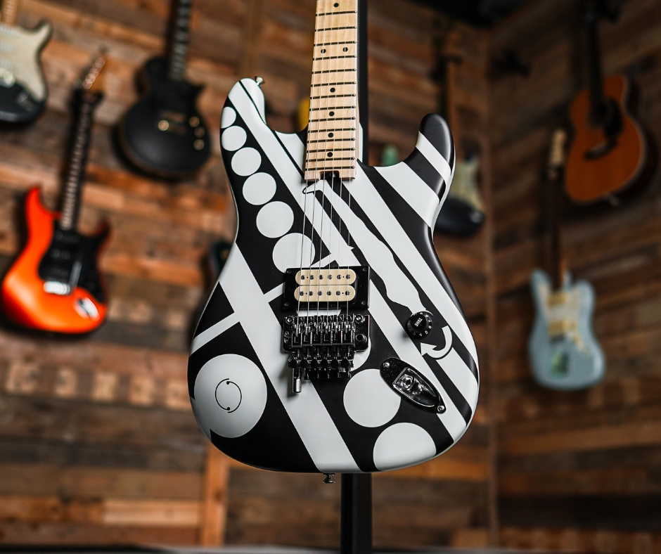 A rock‑ready solidbody electric from EVH’s Striped Series with eye‑catching white and black “crop circles” graphics, designed for high‑energy playing and shredding. It channels the spirit of Eddie Van Halen’s legendary guitars with a simple, aggressive layout — ideal for players seeking iconic looks and powerful, performance‑oriented tone.