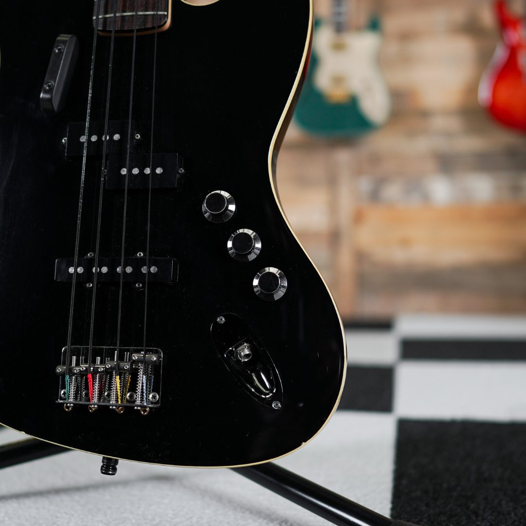 Darkly Alluring Jazz Bass Style, for the bassist who wants a darkly alluring and notably modern take on a Fender classic, the Aerodyne Jazz Bass is a specialized all-black modelΒ unlike any other instrument in the family. It rocksΒ a specially shaped slim body and carved bound top with no pickguard, stained fingerboard with no inlays, smoked-chrome control knobs, and hardware, and a Stratocaster output jack.