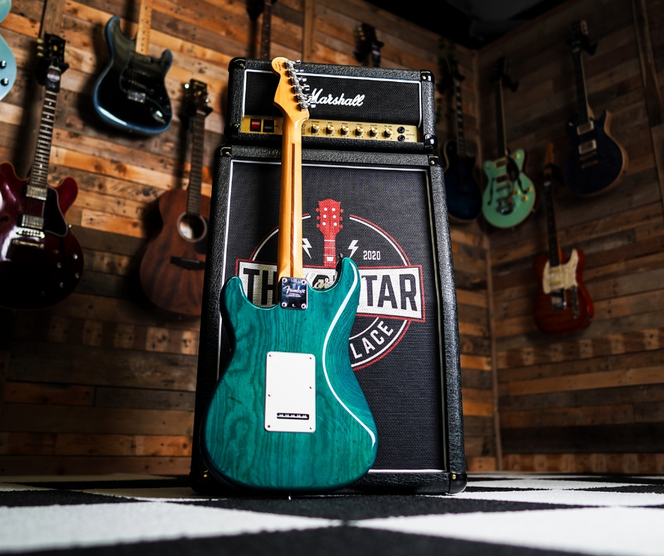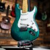 The Fender American Deluxe Stratocaster in Transparent Teal blends classic Strat styling with modern upgrades for enhanced performance and tone. With noiseless pickups, a compound radius neck, and premium hardware, itβs built for smooth playability and stage-ready versatility.