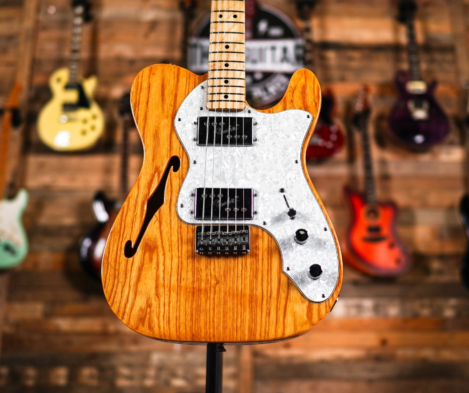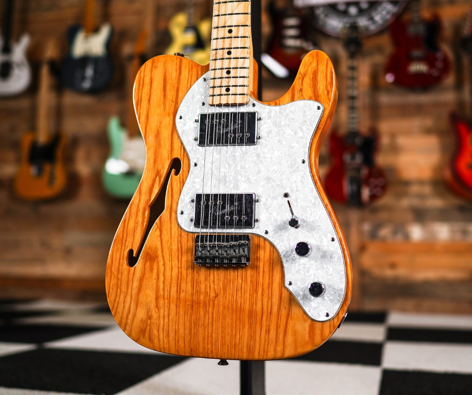 The Fender Classic Series ’72 Telecaster Thinline in Natural is a semi-hollow reissue of the iconic early-’70s model, combining vintage aesthetics with warm, resonant tones. Featuring dual Wide Range humbuckers, a lightweight ash body, and a smooth maple neck, it delivers a perfect blend of clarity, punch, and sustain.