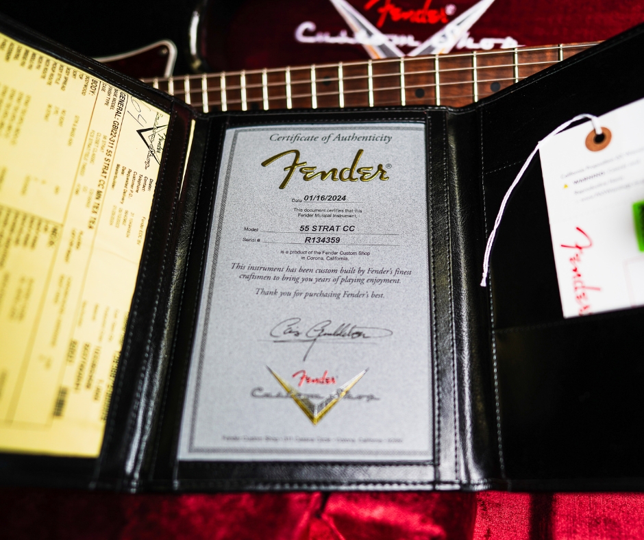 A meticulous ’55 Stratocaster reissue in a rare Texas Tea Closet Classic finish, this Custom Shop model channels the early Fender vibe with a roasted look, hand‑wound pickups and classic Strat features — delivering that sweet, chiming bell tone with nuanced dynamics and vintage playability. Built in the USA by Fender’s elite luthiers, it’s ideal for collectors and tone purists alike.