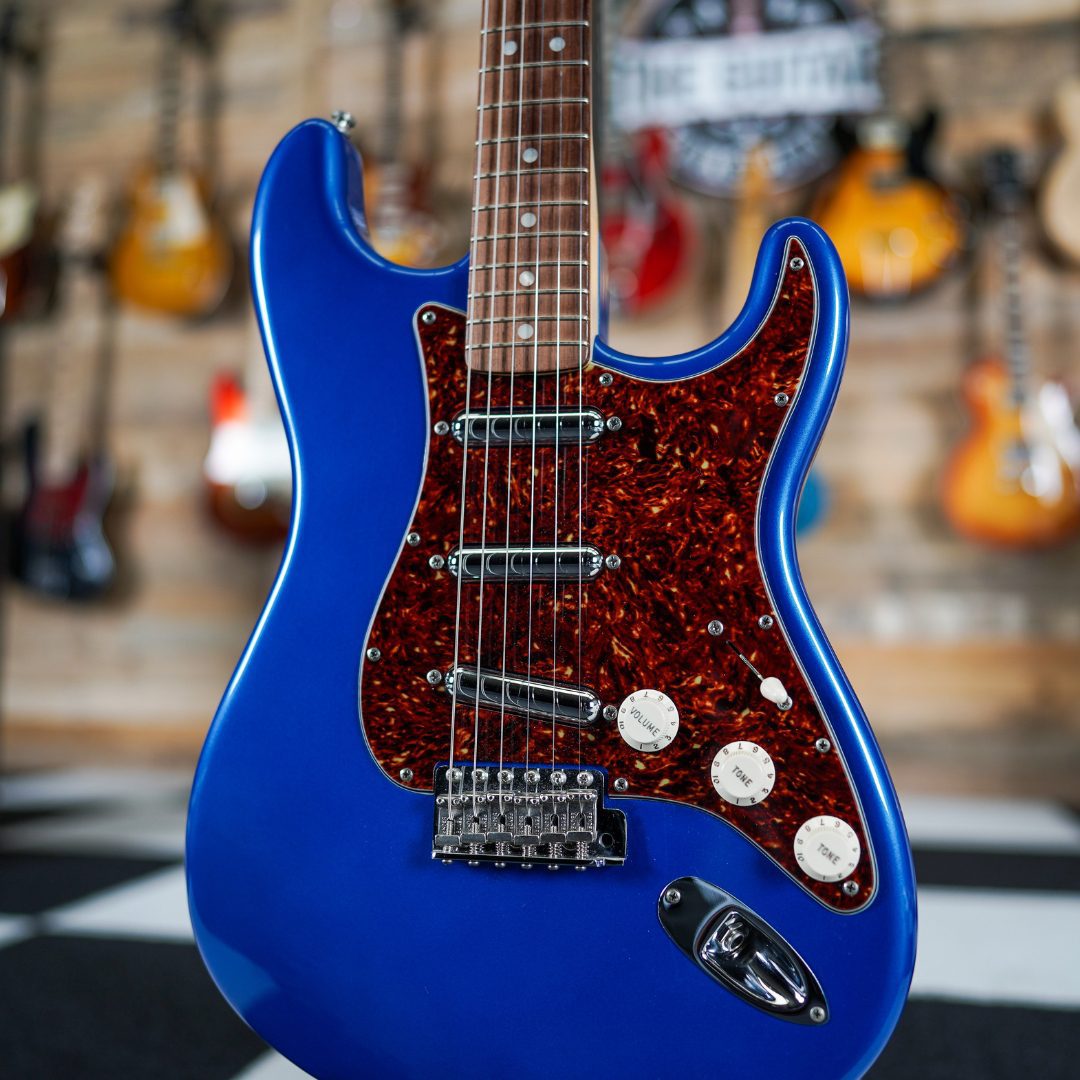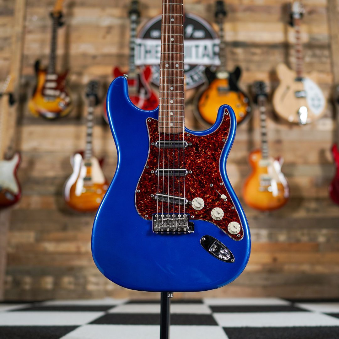 You won’t find many like this! In fact, you’ll only find 20 as this guitar was part of a limited run of models from Fender’s Custom Shop. The guitar was in production for the European market only, and features custom-made Seymour Duncan Lipstick pickups and a matching headstock!