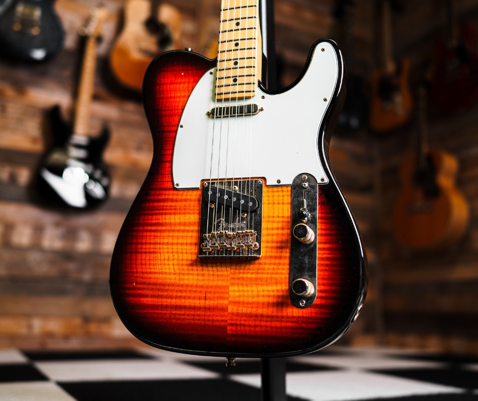A refined celebration of 60 years of Telecasters, this 2011 limited-run model combines vintage charm with modern playability. It features an AAA flame maple top over an alder body, gold hardware, and American Vintage pickups, delivering the classic Tele twang with enhanced resonance and comfortβ―.