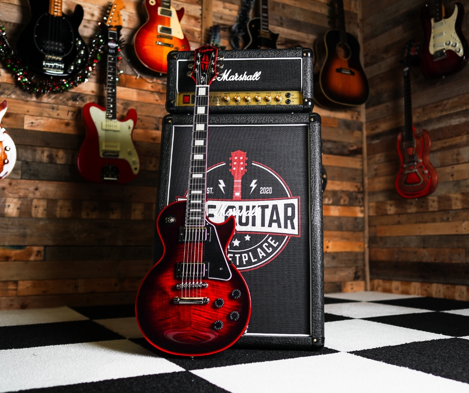 The Epiphone Les Paul Custom Widow Red Burst takes the classic Les Paul Custom blueprint and gives it a modern, eye‑catching makeover: colour‑matched binding, a figured maple top, and a vibrant Red Burst finish. It delivers rich Les Paul tone and sustain while offering a distinctive, “stand‑out” look, perfect for stage or studio!