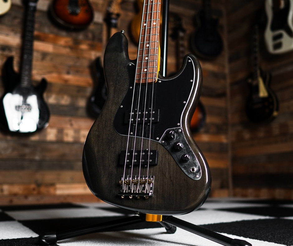 The Fender Modern Player Jazz Bass in Transparent Black gives the classic Jazzβstyle body a modern twist with dual humbucking pickups and sleek finish.