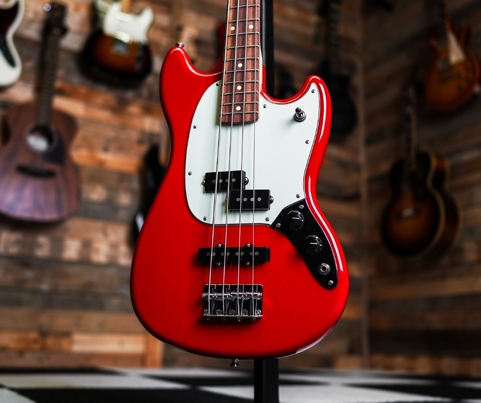 The Fender Player Mustang Bass in Torino Red delivers punchy tone and short-scale comfort in a sleek, retro-inspired package. Ideal for fast playing and tight grooves, it blends classic Fender style with modern reliability and tone.