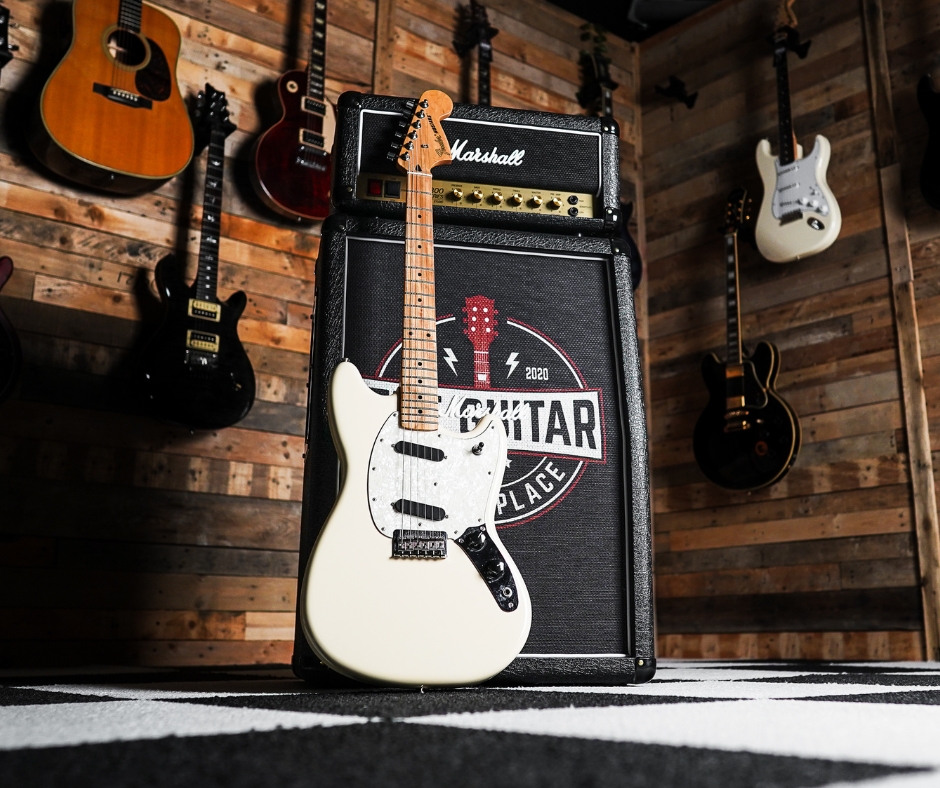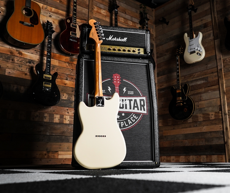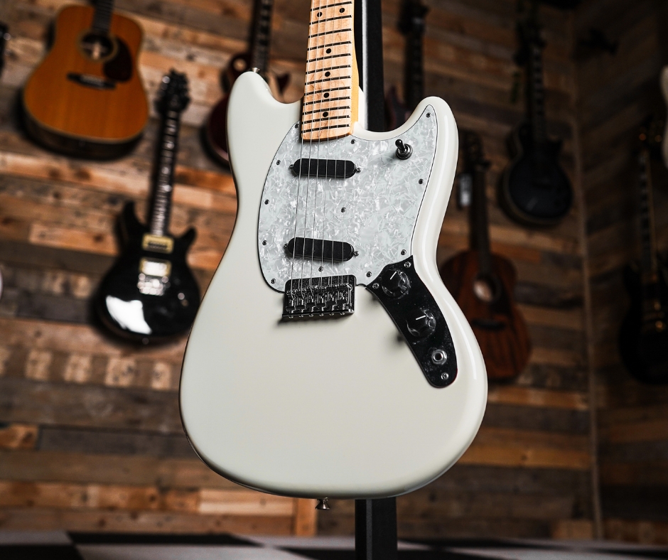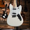 This compact‑scale short‑scale solid‑body electric delivers the signature offset look of the Mustang, wrapped in a crisp Olympic White finish. With its 24″ scale length and two Mustang‑style single‑coil pickups, it balances vintage feel and modern playability — perfect for players looking for something comfortable and agile.