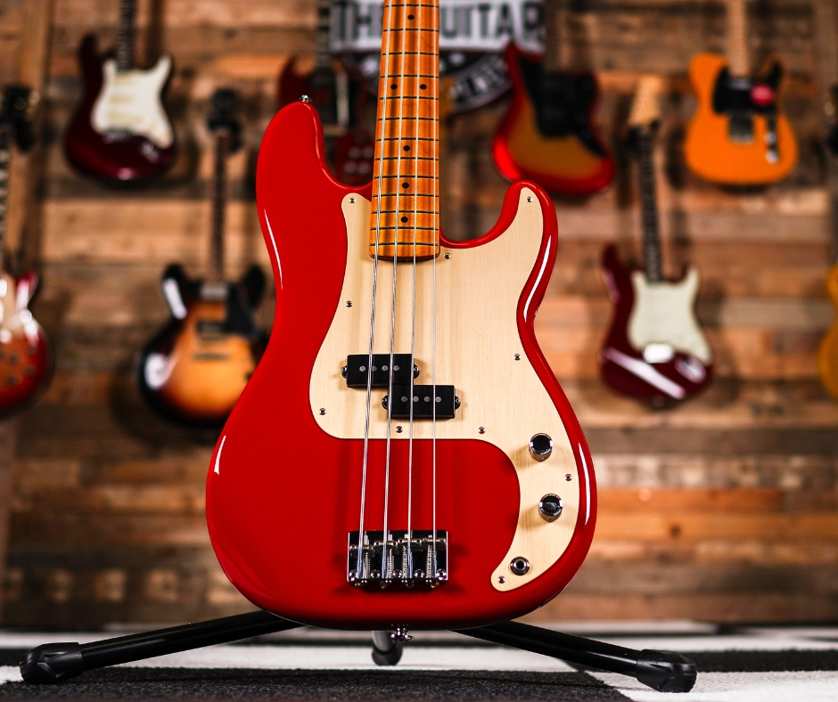 The Fender Vintera β50s Precision Bass in Dakota Red is a vintage-inspired reissue that captures the feel, tone, and style of Fenderβs earliest P-Basses. Featuring a thick β50s-style maple neck, an authentic split-coil pickup, and period-correct hardware, it delivers the punchy, warm tones that defined early rock, blues, and country music. The bold Dakota Red finish adds a striking visual touch to this timeless classic.