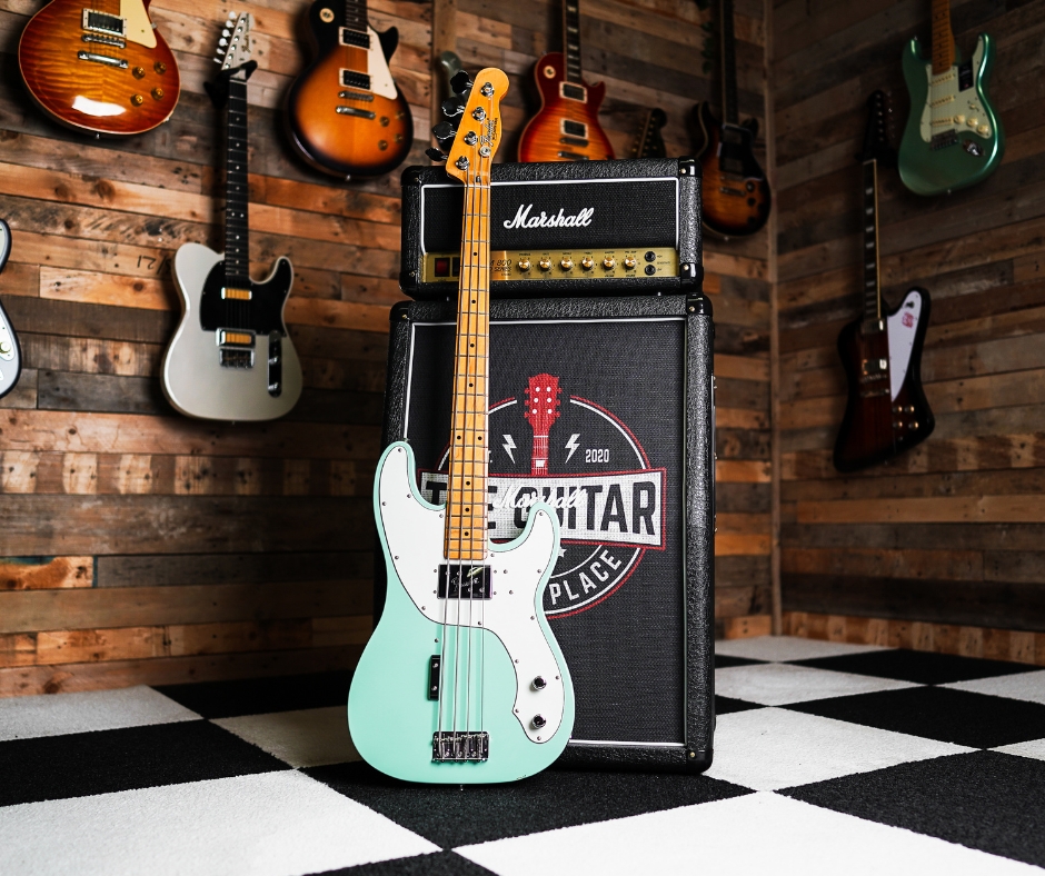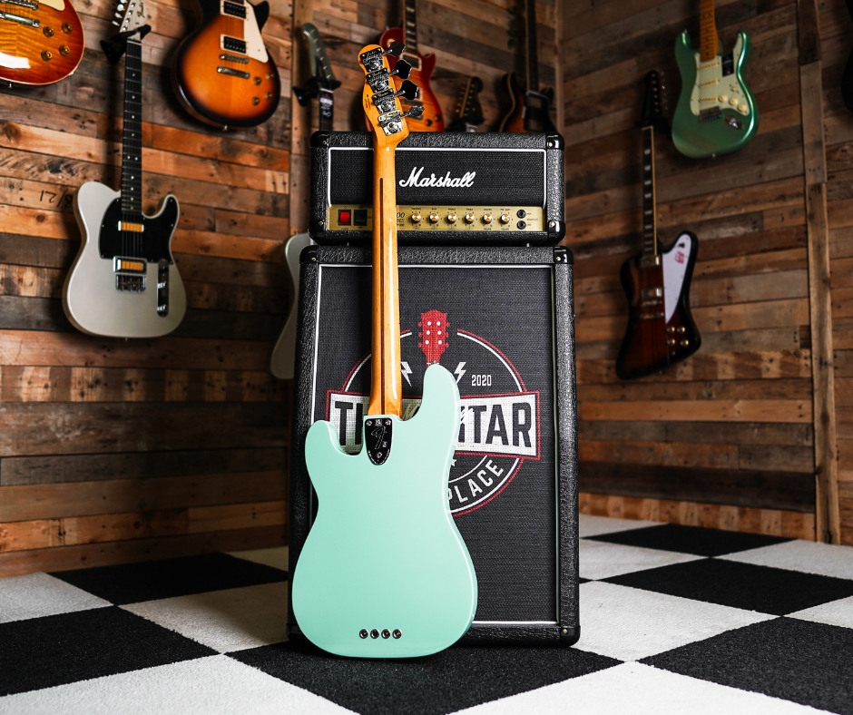 A vintage‑inspired Telecaster‑style electric bass in Surf Green with classic ‘70s Fender vibe and modern playability. It captures the feel and tone of the original Fender Tele Bass with period correct appointments and a punchy, warm low end. A reissue that blends classic Fender Tele aesthetics with vintage‑style hardware, this Vintera II model delivers rich, woody bass tone from a Wide‑Range humbucker and comfortable playability via a mid‑’70s C‑shape neck and vintage tall frets.