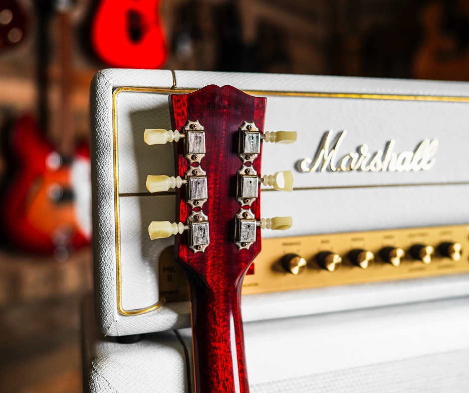 The Gibson Custom Shop 60th Anniversary 1960 Les Paul V3 in Washed Bourbon Burst is a meticulously crafted tribute to the iconic 1960 Les Paul, offering premium vintage styling with modern playability. Featuring a solid mahogany body, carved maple top with a beautiful Washed Bourbon Burst finish, and Custom Bucker pickups, this guitar delivers classic Les Paul warmth, sustain, and clarity. The ’60s-style slim-taper neck and top-tier hardware provide an exceptional playing experience, making this an ideal choice for discerning players seeking vintage tone with a modern touch.
