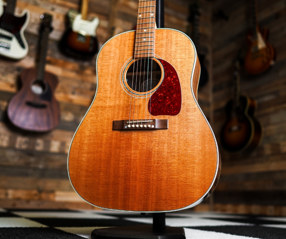 The Gibson J-15 Standard Walnut in Antique Natural is a U.S.-made acoustic that offers rich tone, modern playability, and eco-conscious craftsmanship. With its walnut back and sides, solid spruce top, and hand-built quality, it delivers a warm, balanced voice perfect for fingerpicking or strumming.