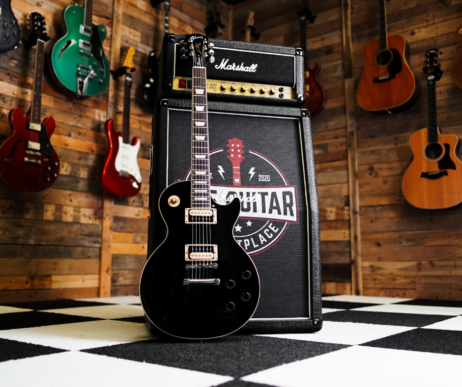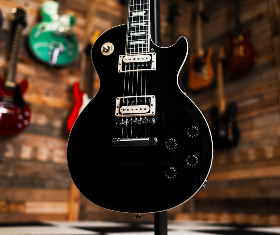 The 2021 Gibson Les Paul Classic in Ebony is a chambered Les Paul that balances vintage aesthetics with player-friendly updates—delivering the rich tone of a mahogany/maple combo, slimmer “Slim Taper” neck, uncovered 60s-era BurstBucker pickups, and coil-splitting/phase/pure-bypass versatility via four push-pull pots.