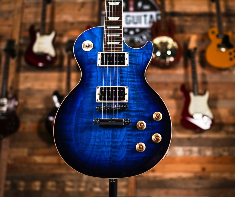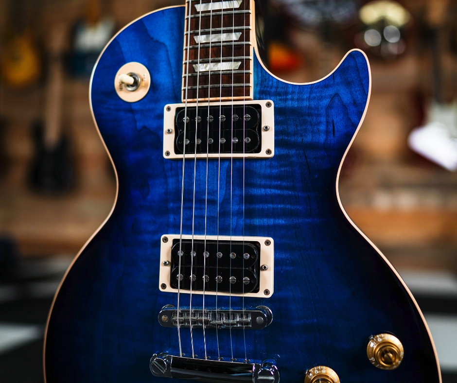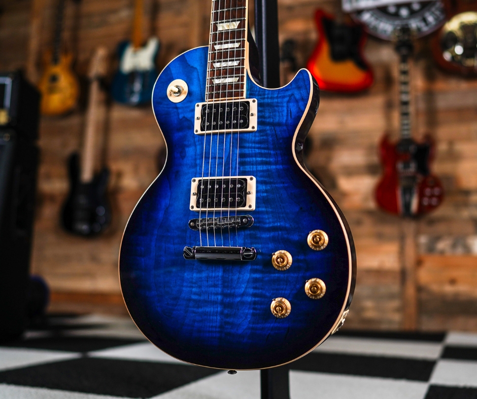 The Gibson Les Paul Classic Plus in Manhattan Midnight is a stunning blend of vintage style and modern performance, featuring a beautifully figured maple top with a deep blue burst finish. With its ’60s-style SlimTaper neck, open-coil humbuckers, and weight-relieved mahogany body, it delivers powerful, articulate tones with superb playability. The eye-catching Manhattan Midnight finish adds a bold, refined look to this classic rock machine.