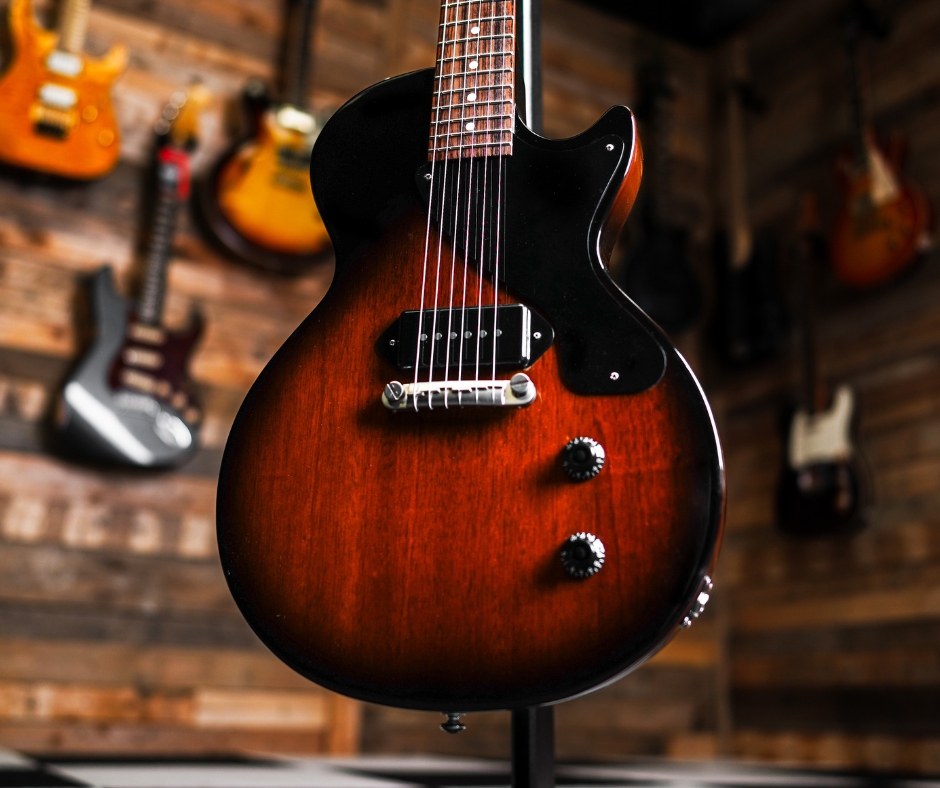 The Gibson LesΒ Paul Junior in Vintage Tobacco Burst brings raw, single-pickup simplicity with classic rock tone and feel. Its lightweight mahogany slab body, fat β50s-style neck, and powerful P90 Dog-ear pickup deliver biting midrange, gritty growl, and playability that works for blues, punk, and garage rockβ―.