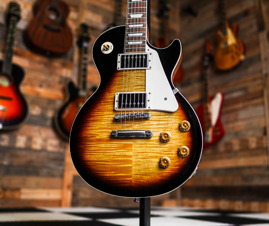 The Gibson Les Paul Standard ’50s in Tobacco Burst is a soulful return to the “Golden Era” of guitar manufacturing. Eschewing modern weight relief and high-output electronics, this model is a purist’s dream, featuring a solid mahogany body and a thick, rounded ’50s vintage neck profile that provides incredible sustain and resonance.