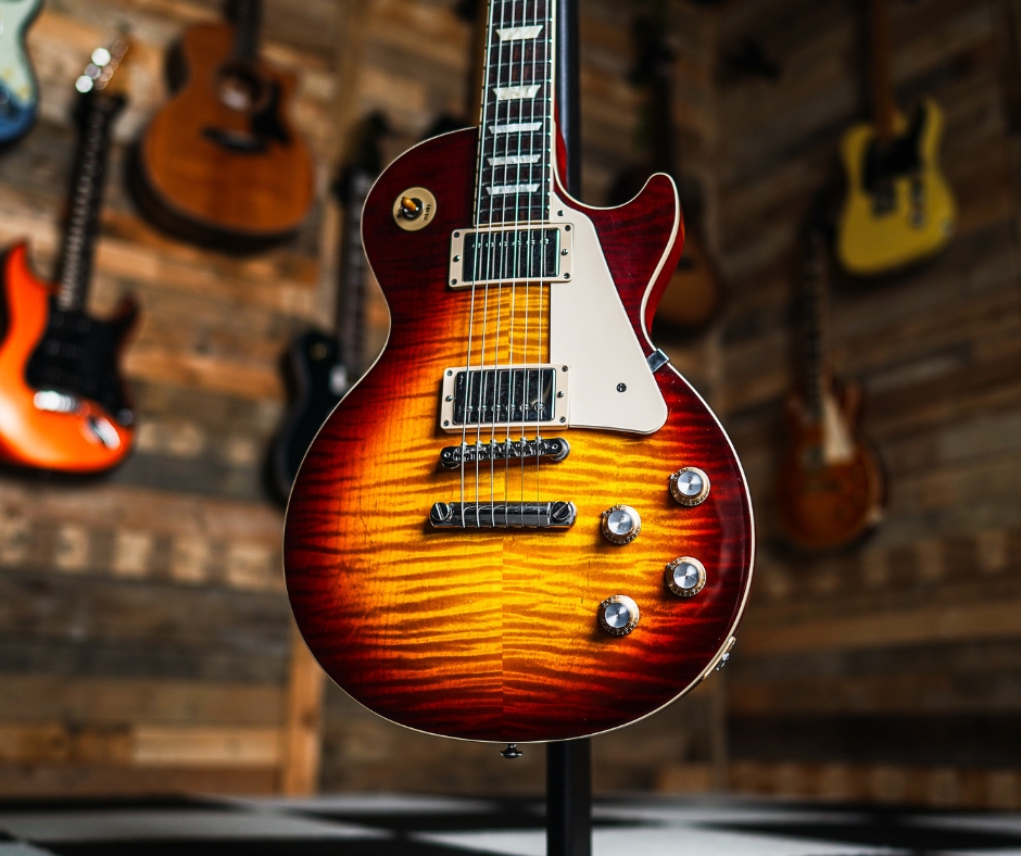 A classic modern incarnation of the iconic 1960s Les Paul Standard in a warm Iced Tea gloss finish, this USA‑made single‑cut guitar delivers rich, sustaining tone courtesy of premium tonewoods, vintage‑inspired pickups and comfortable playability — ideal for blues, rock, jazz and more.