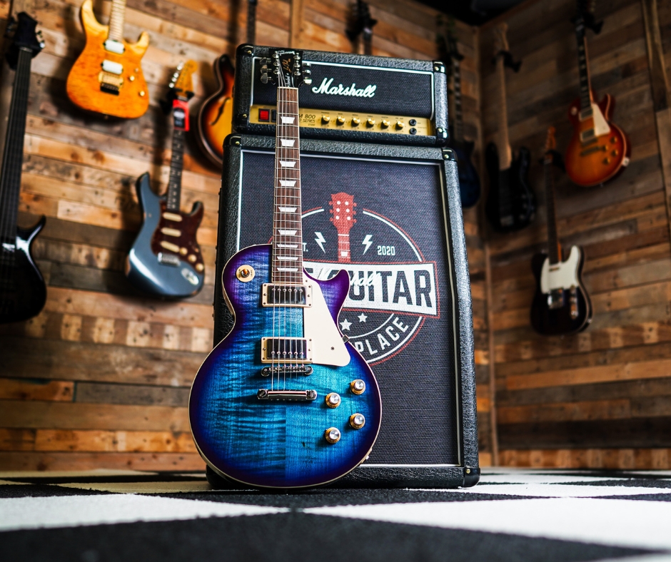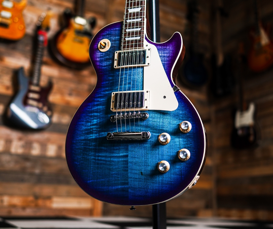 The Gibson Les Paul Standard in Blueberry Burst is a visually striking Les Paul Standard blending timeless specs with a vibrant gradient finish. Boasting a solid mahogany body topped with AA flamed maple, it features Slim Taper necks and powerful BurstBucker pickups for authentic ’60s tone, all paired with modern playability and high-end hardware.