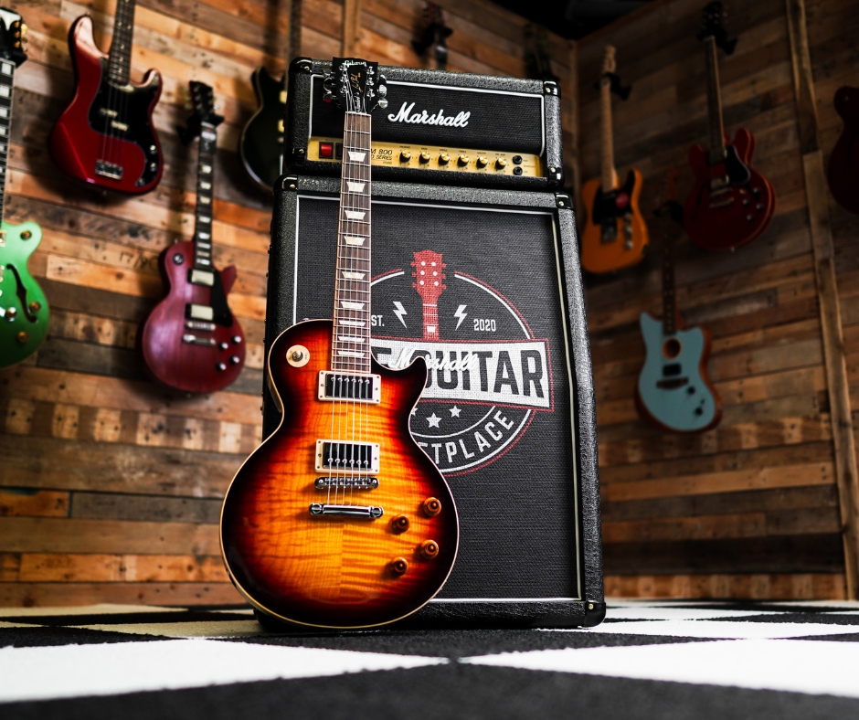 The Gibson Les Paul Standard in Desert Burst is a classic American-made powerhouse, combining a resonant mahogany body with a beautifully carved flamed maple top. It features a modern asymmetrical slim ’60s neck, compound-radius rosewood fingerboard, and versatile Burstbucker humbuckers with coil‑tap for tonal flexibility. Finished in warm Desert Burst nitrocellulose, it blends vintage aesthetics with contemporary playability.
