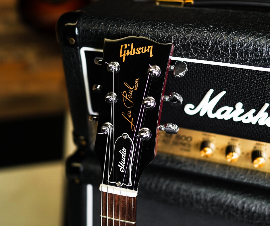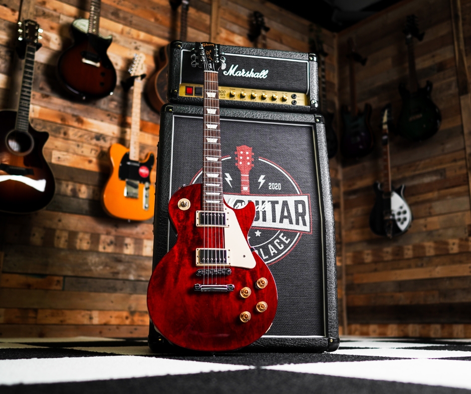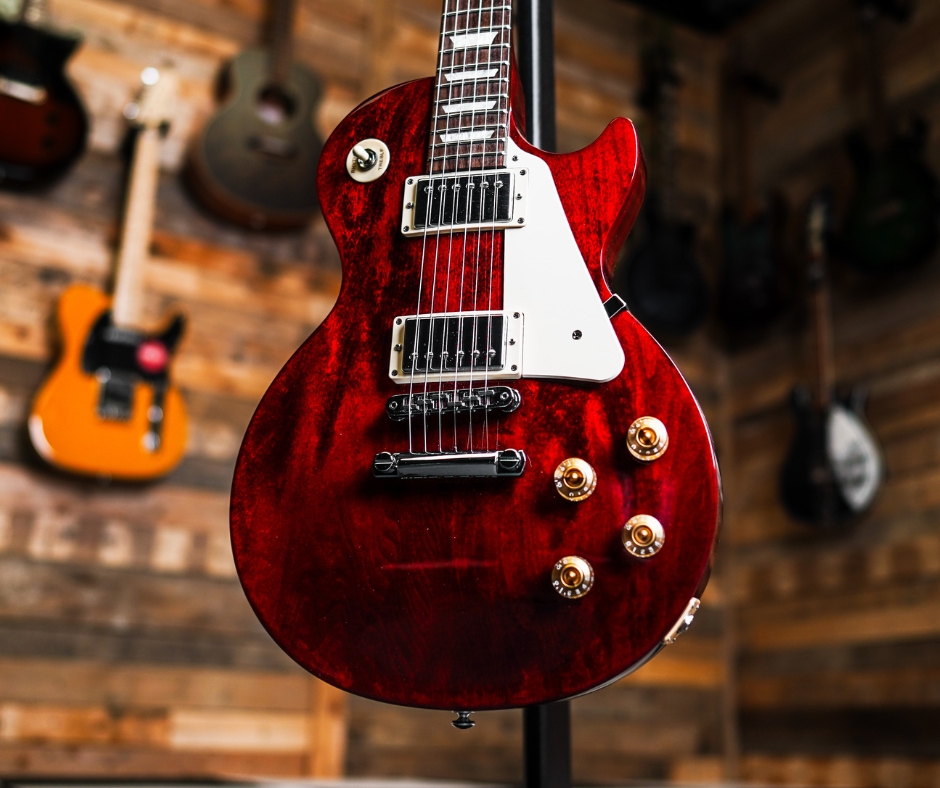 The Gibson Les Paul Studio in Wine Red is a streamlined, tone-first Les Paul that offers serious playability with modern weight relief and coil-tapping versatility. It combines mahogany warmth with maple top clarity, fitted with SlimTaper neck and push-pull BurstBucker Pro humbuckers for both classic and single-coil sounds.