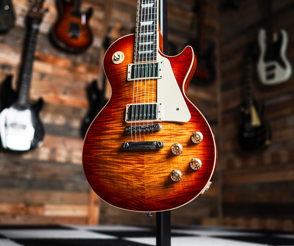 The Gibson Les Paul Traditional in Heritage Cherry Sunburst brings the classic Les Paul tone and build into the modern era β with a non-weight-relieved mahogany body, carved maple top, set mahogany neck with a βroundedβ vintage profile, and BurstBucker humbuckers that deliver rich sustain, warm lows and crisp highs. All finished in the iconic Heritage Cherry Sunburst lacquer that showcases the wood grain and classic single-cut silhouette.
