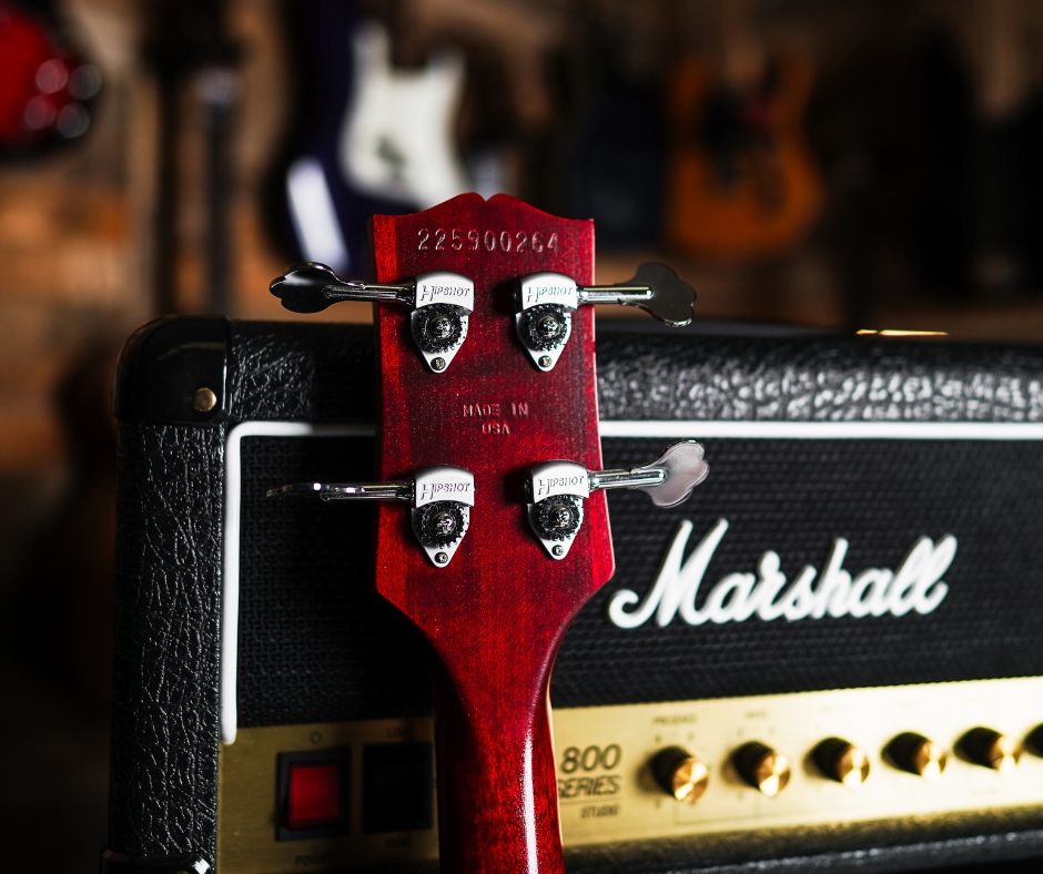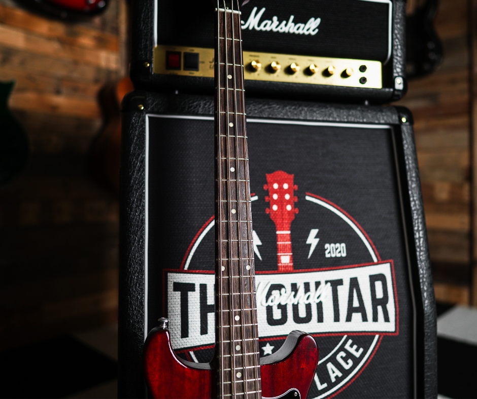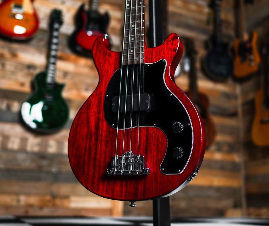 The Gibson Les Paul Tribute DC Bass is a short-scale powerhouse that blends vintage-inspired design with modern tone and comfort. With its double-cutaway mahogany body and punchy humbucker, it delivers fat, warm bass tones in a sleek, lightweight package.