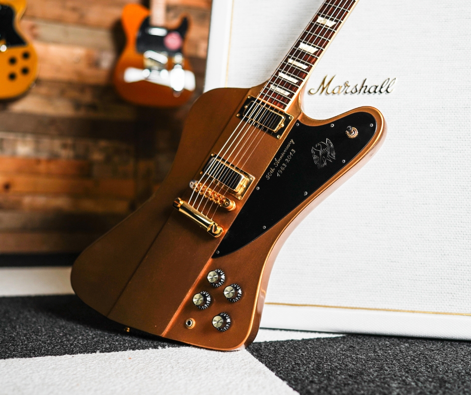 The Gibson Limited Edition 50th Anniversary Firebird in Bullion Gold is a stunning tribute to the iconic Firebird, celebrating 50 years of this classic model. With a striking Bullion Gold finish, this guitar features a solid mahogany body and neck-through construction, offering sustain and a smooth, balanced tone. Equipped with powerful mini-humbuckers, the Firebird delivers a bright, focused sound with excellent clarity, making it a perfect choice for rock, blues, and everything in between.