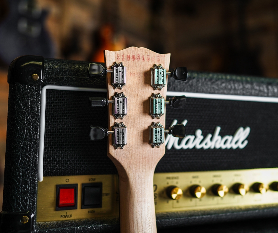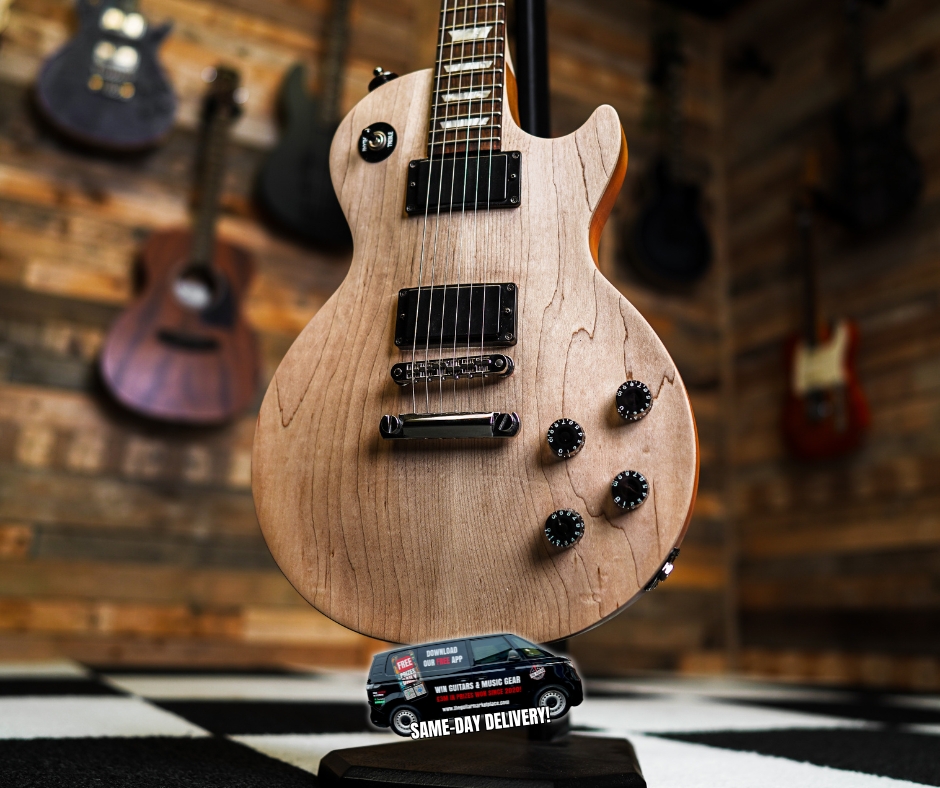 The Gibson LPJ in Natural is a stripped-down, no-nonsense take on the classic Les Paul, offering raw tone and workhorse reliability. With a satin finish and powerful humbuckers, it’s built for players who prioritize feel and sound over flashy aesthetics. The guitar has been professionally stripped of its finish down to the natural wood.