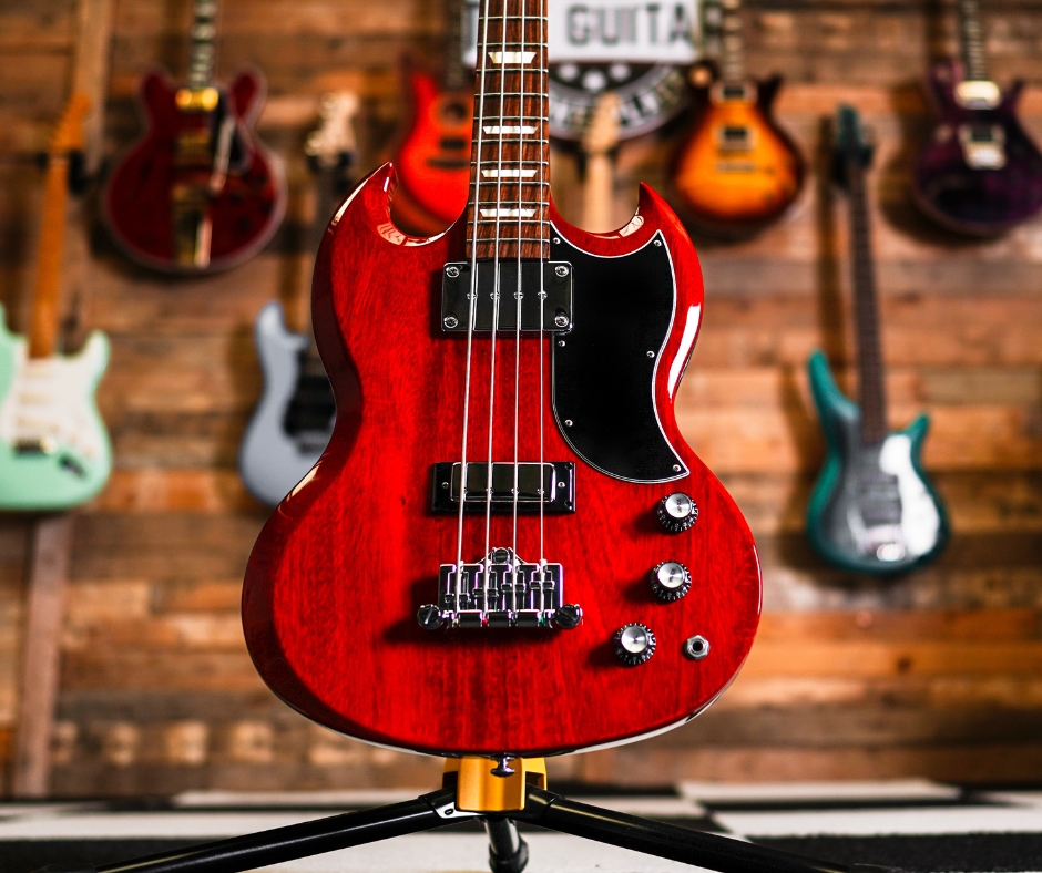 The Gibson SG Standard Bass in Heritage Cherry is a modern take on the classic short-scale bass, offering deep, punchy tones with a sleek, lightweight design. Its solid mahogany body, dual humbucking pickups, and vintage-inspired styling make it a go-to for players seeking rich low-end with effortless playability. The Heritage Cherry finish enhances its iconic double-cutaway look.